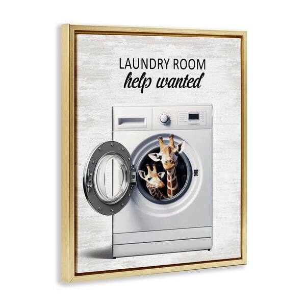 Laundry Room Help Wanted by Lettered and Lined Gray Floater Frame Typography Graphic Art Print 31 in. x 25 in.
