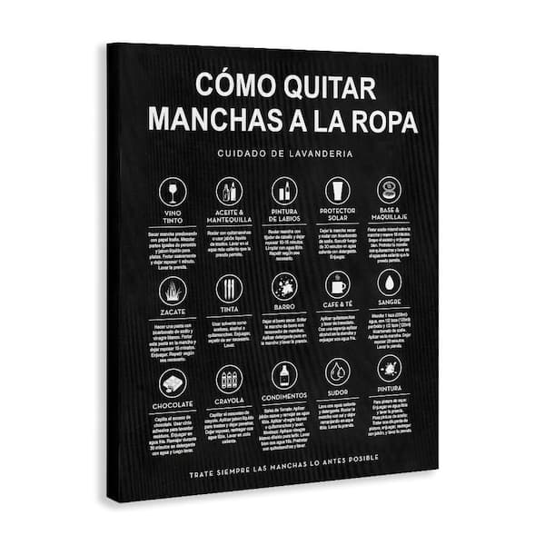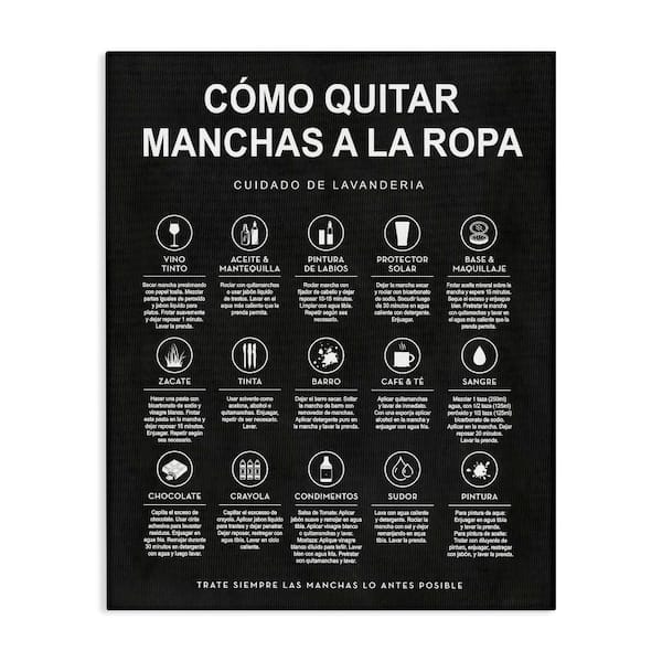 Lavanderia Stain Guide Black by Lettered and Lined Gallery Wrapped Unframed Typography Graphic Art Print 48 in. x 36 in.