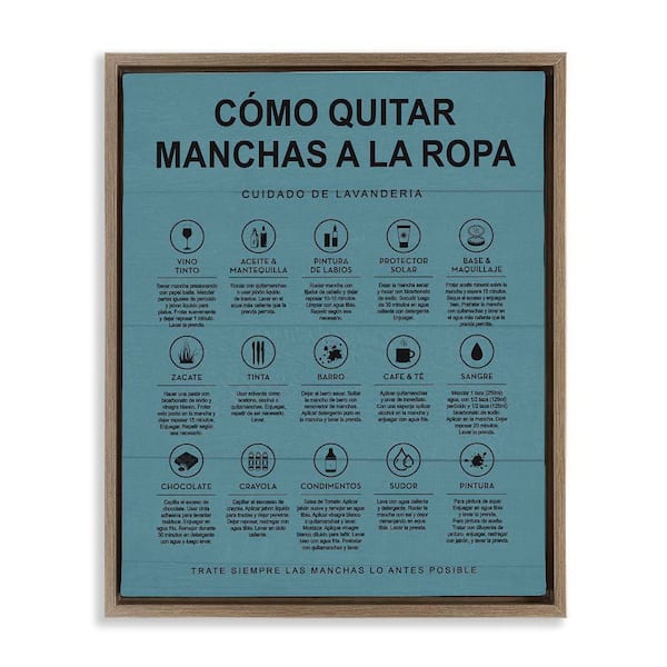 Lavanderia Stain Guide Blue by Lettered and Lined Brown Floater Frame Typography Graphic Art Print 21 in. x 17 in.
