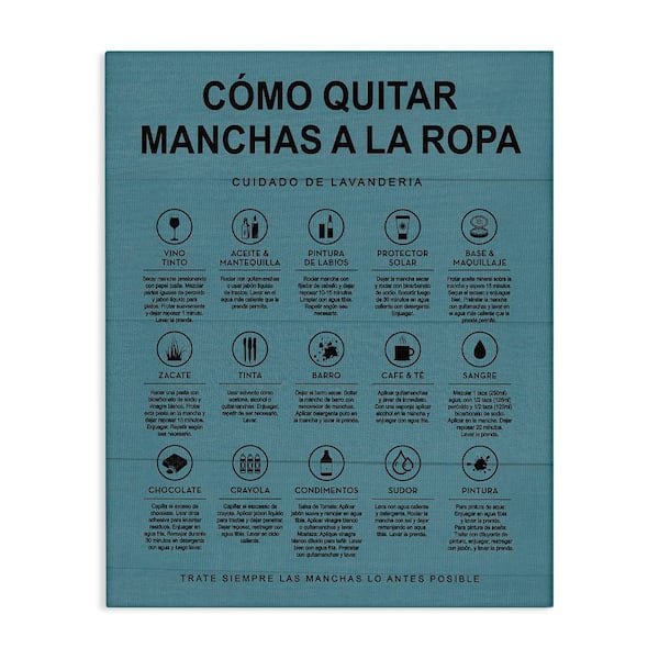 Lavanderia Stain Guide Blue by Lettered and Lined Gallery Wrapped Unframed Typography Graphic Art Print 48 in. x 36 in.