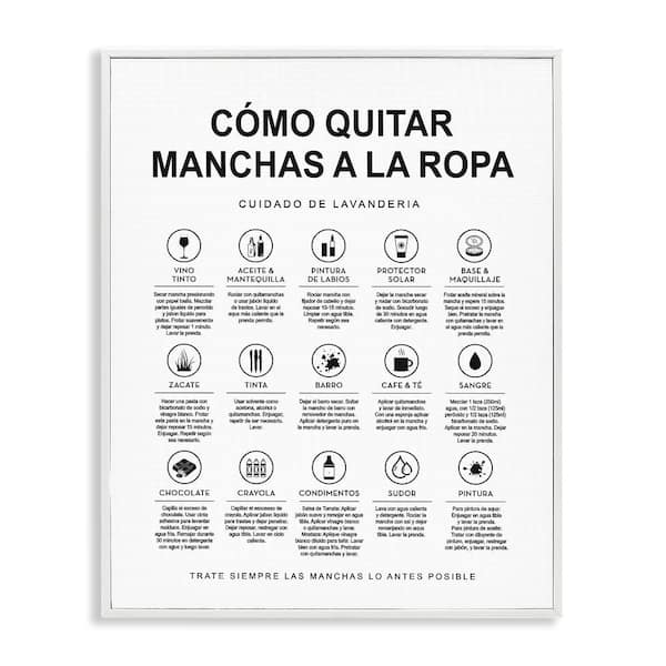 Lavanderia Stain Guide White by Lettered and Lined White Framed Typography Giclee Art Print 30 in. x 24 in.