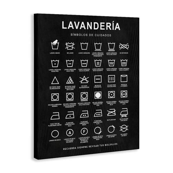 Lavanderia Symbol Guide Black by Lettered and Lined Wrapped Unframed Typography Graphic Art Print 48 in. x 36 in.