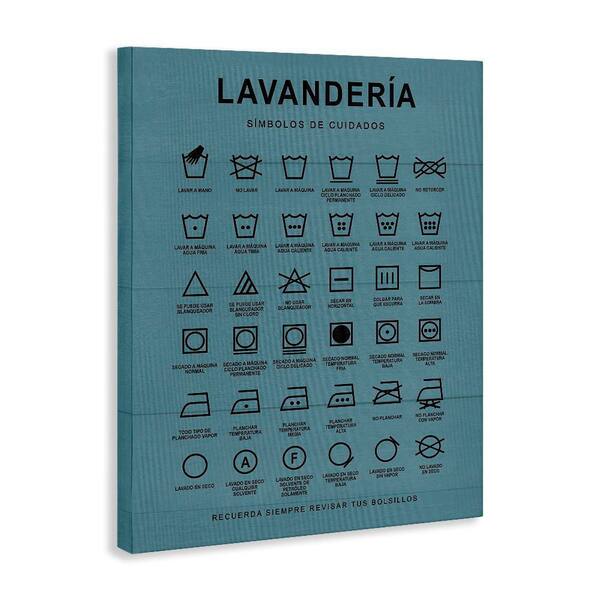 Lavanderia Symbol Guide Blue by Lettered and Lined Gallery Wrapped Unframed Typography Graphic Art Print 20 in. x 16 in.