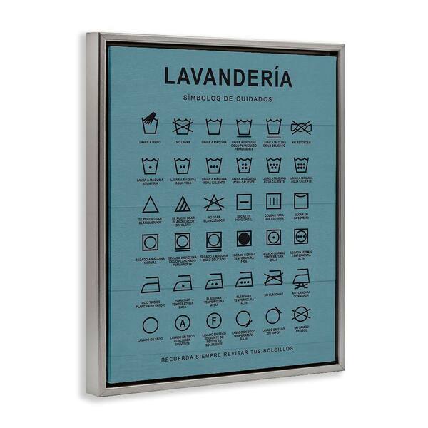 Lavanderia Symbol Guide Blue by Lettered and Lined Gray Floater Frame Typography Graphic Art Print 31 in. x 25 in.
