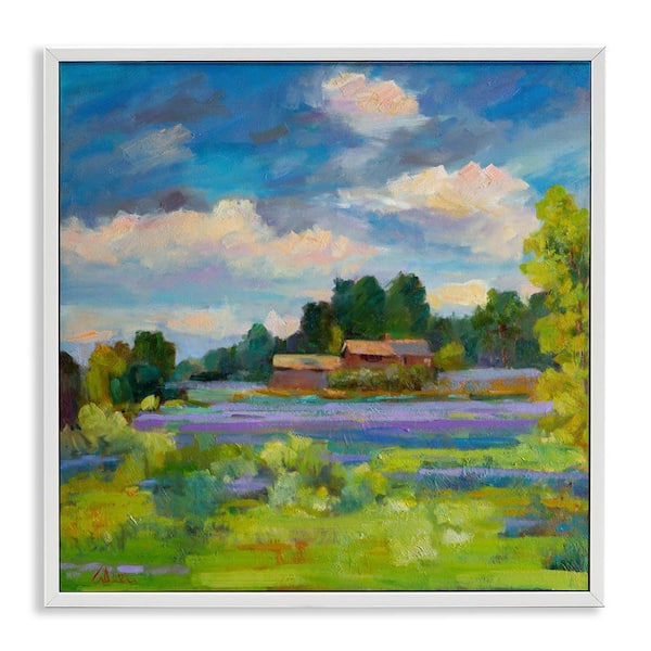 Lavender Countryside Landscape by Alexi Fine White Framed Nature Giclee Art Print 12 in. x 12 in.