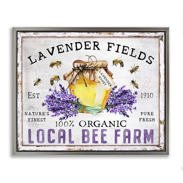 Lavender Fields Bee Farm by Creatif Belle Gray Floater Frame Animal Graphic Art Print 25 in. x 31 in.