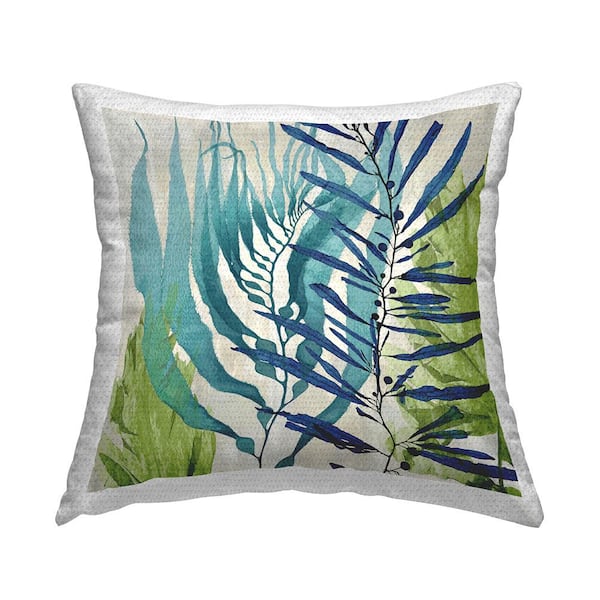 Layered Tropical Blue Leaves Blue Square Outdoor Throw Pillow