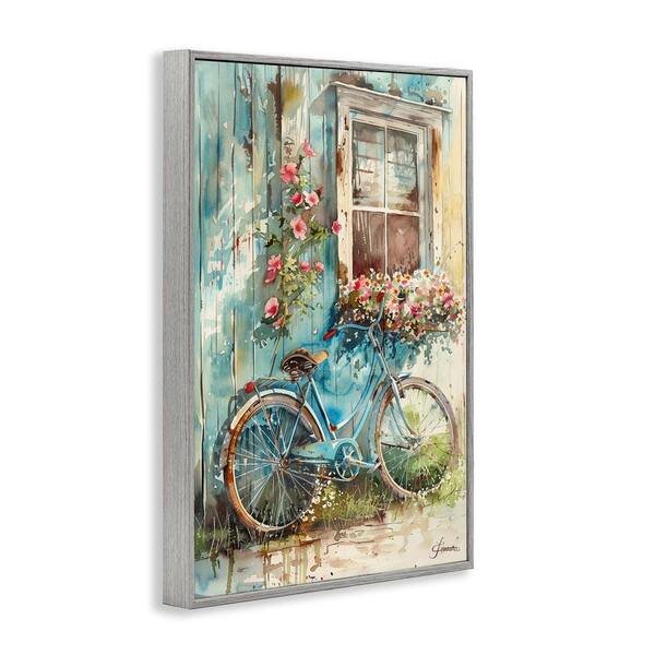 Leaning Spring Bicycle by Franklyn Gregory Gray Framed Typography Giclee Art Print 30 in. x 20 in.