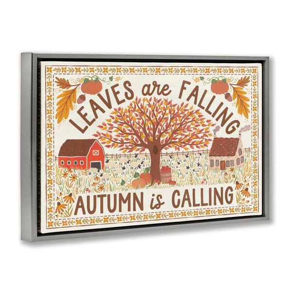 Leaves Are Falling Scene by Laura Marshall Gray Floater Frame Graphic Nature Art Print 17 in. x 25 in.