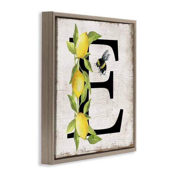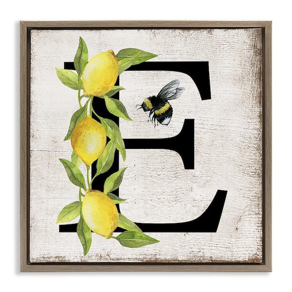 Lemon & Bee E Letter by Creatif Belle Brown Floater Frame Animal Graphic Art Print 25 in. x 25 in.