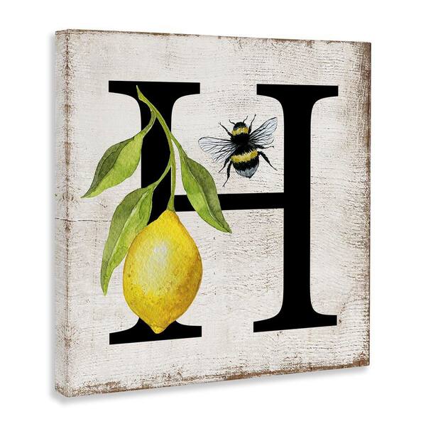 Lemon & Bee H Letter by Creatif Belle Unframed Animal Graphic Art Print 17 in. x 17 in.