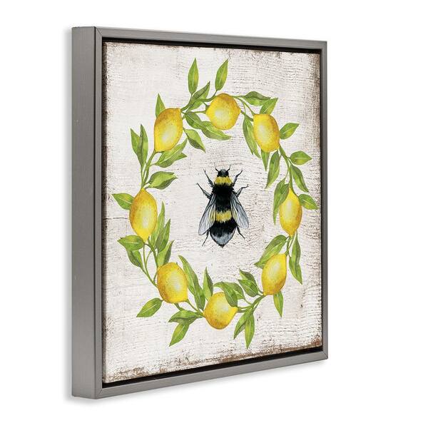 Lemon & Bee Wreath by Creatif Belle Gray Floater Frame Animal Graphic Art Print 25 in. x 25 in.