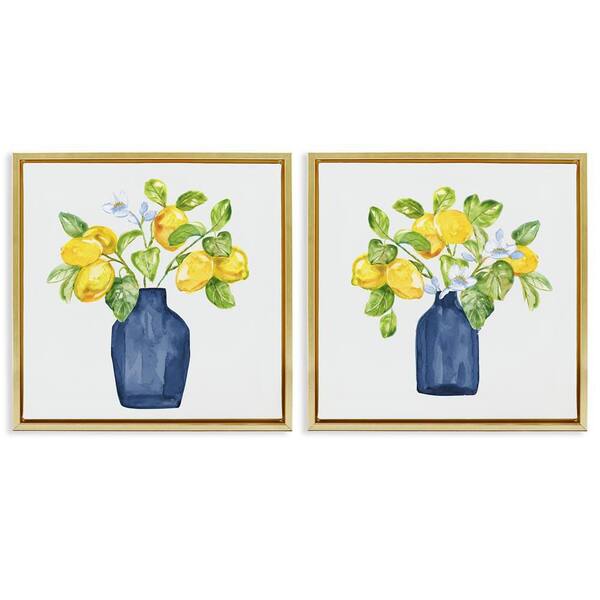 Lemon Branches in Vases by Nan 2-Pieces Gold Floater Frame Food Graphic Art Print 25 in. x 25 in.