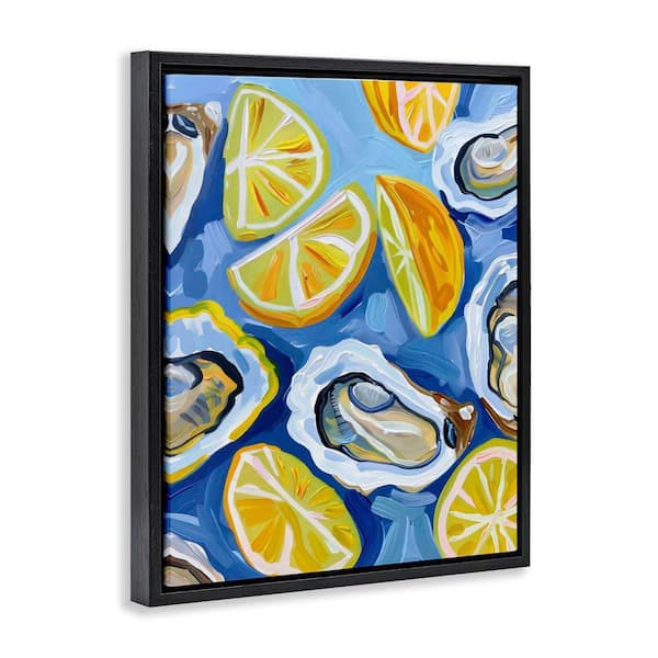 Lemon & Oyster Pattern by LSR Design Studio Black Floater Frame Food Graphic Art Print 21 in. x 17 in.