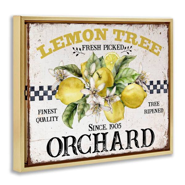 Lemon Tree Fresh Picked by Creatif Belle Gold Floater Frame Food Graphic Art Print 25 in. x 31 in.