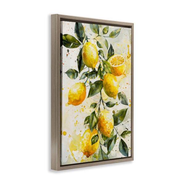 Lemon Watercolor Splashes by LSR Design Studio Brown Floater Frame Food Graphic Art Print 25 in. x 17 in.