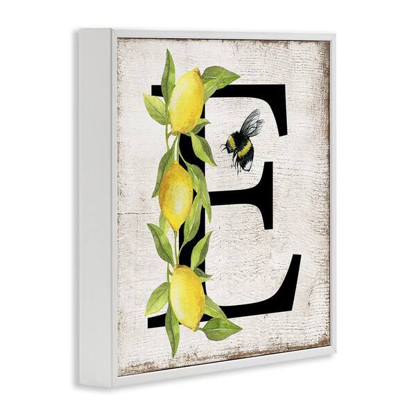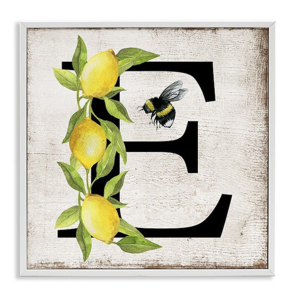 Lemon and Bee E Letter by Creatif Belle White Framed Animal Giclee Art Print 24 in. x 24 in.