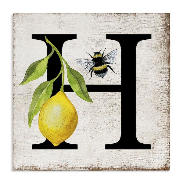 Lemon and Bee H Letter by Creatif Belle Unframed Animal Graphic Art Print 36 in. x 36 in.