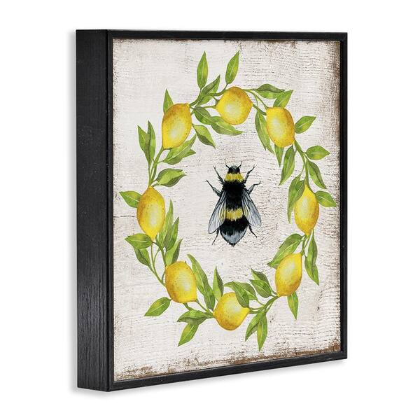 Lemon and Bee Wreath by Creatif Belle Black Framed Animal Giclee Art Print 24 in. x 24 in.