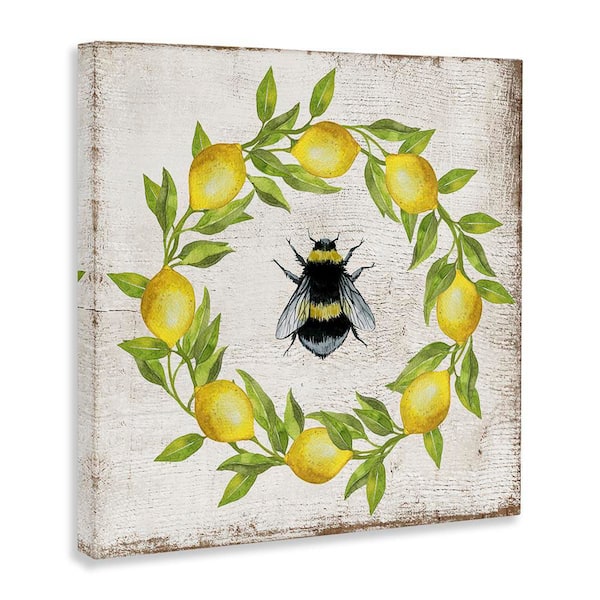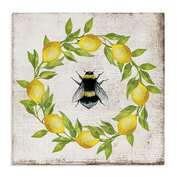 Lemon and Bee Wreath by Creatif Belle Unframed Animal Graphic Art Print 36 in. x 36 in.