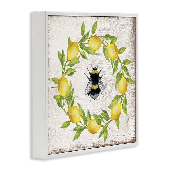 Lemon and Bee Wreath by Creatif Belle White Framed Animal Giclee Art Print 17 in. x 17 in.