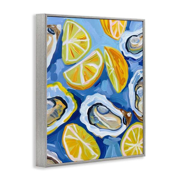 Lemon and Oyster Pattern by LSR Design Studio Gray Framed Food Giclee Art Print 30 in. x 24 in.