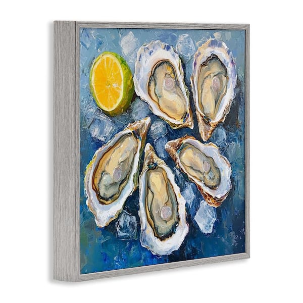 Lemon and Oysters Seafood by LSR Design Studio Gray Framed Food Giclee Art Print 17 in. x 17 in.