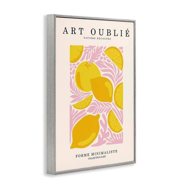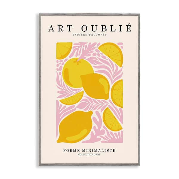 Lemons on Pink Florals by Incado Gray Framed Food Giclee Art Print 30 in. x 20 in.
