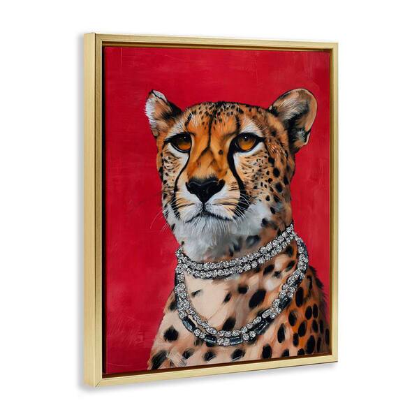 Leopard Royalty with Necklace by Svetlana Aleynikova Gold Floater Frame Animal Graphic Art Print 21 in. x 17 in.
