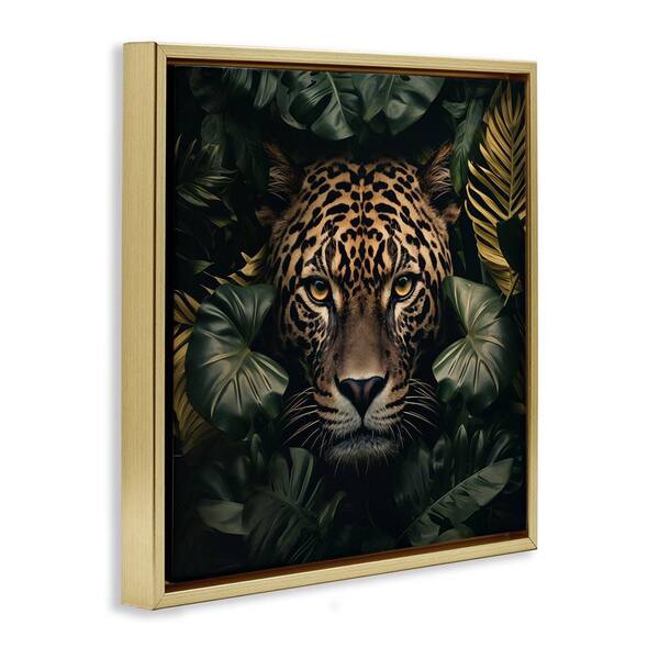 Leopard in Exotic Palms by Heidi Kuntz Gray Floater Frame Animal Graphic Art Print 25 in. x 25 in.