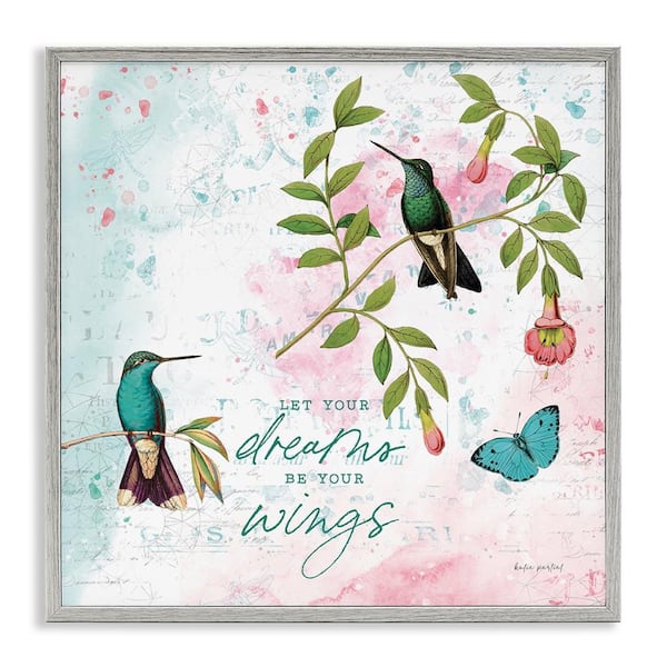 Let Your Dreams Be Wings by Katie Pertiet Gray Framed Animal Giclee Art Print 24 in. x 24 in.