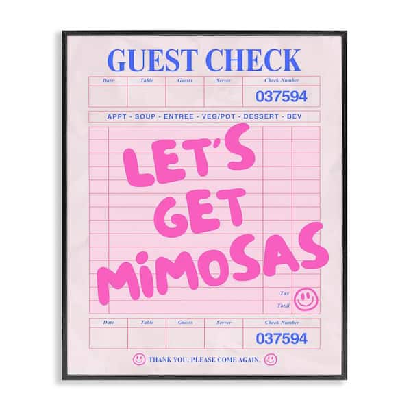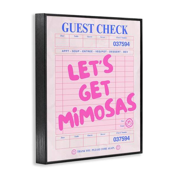 Let's Get Mimosas Check by House of Lulu Black Framed Typography Giclee Art Print 14 in. x 11 in.