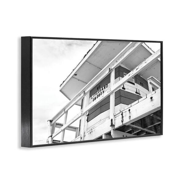 Lifeguard Building on Beach by Seven Trees Design Black Framed Typography Giclee Art Print 16 in. x 24 in.