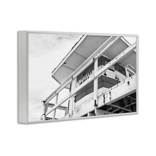 Lifeguard Building on Beach by Seven Trees Design White Framed Typography Giclee Art Print 20 in. x 30 in.