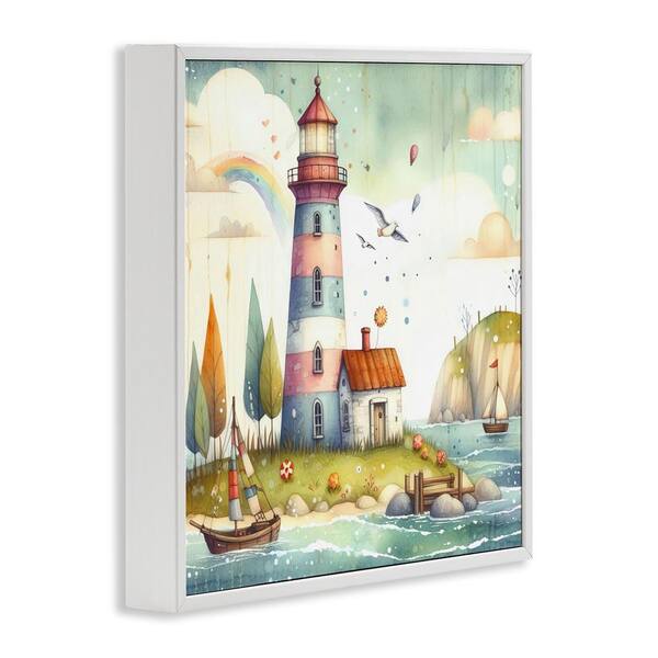 Lighthouse Cottage Scenery by LSR Design Studio White Framed Coastal Giclee Art Print 17 in. x 17 in.