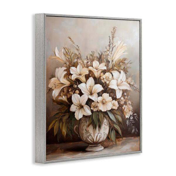 Lily Bouquet Still Life by Petal Prints Design Gray Framed Nature Giclee Art Print 20 in. x 16 in.