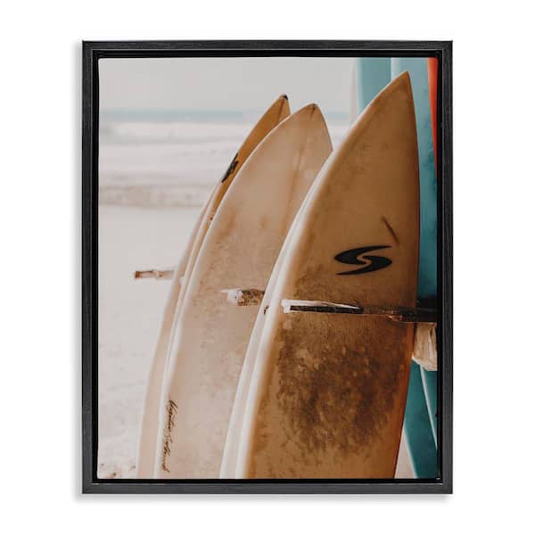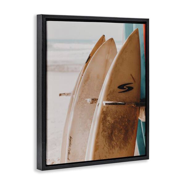 Lined Up Surfboards by LSR Design Studio Black Floater Frame Sports Graphic Art Print 31 in. x 25 in.