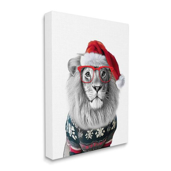 Lion in Christmas Sweater by Annalisa Latella 1-Piece Unframed Graphic Print Animal Poster Art Print 48 in. x 36 in.