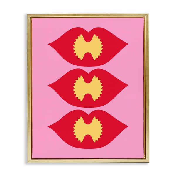 Lips & Bowtie Pasta by Daphne Polselli Gold Floater Frame Food Graphic Art Print 31 in. x 25 in.