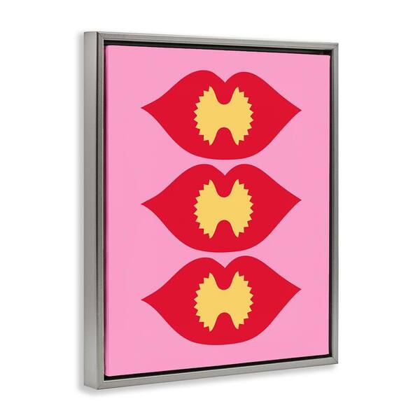 Lips & Bowtie Pasta by Daphne Polselli Gray Floater Frame Food Graphic Art Print 31 in. x 25 in.