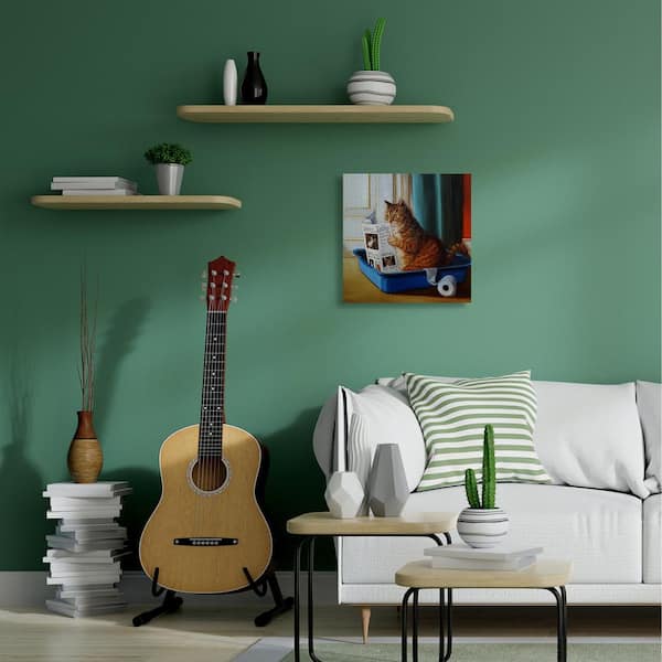 "Litter Box Reading Funny Cat Pet Painting" by Lucia Heffernan Canvas Home Wall Art 24 in. x 24 in.