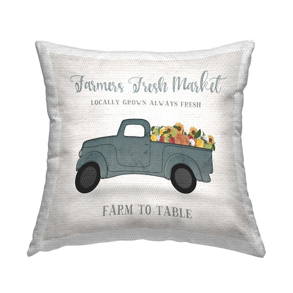 Locally Grown Autumn Flowers Pumpkins Beige Square Outdoor Throw Pillow
