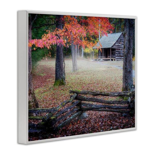 Log Cabin Woody Autumn Foliage by Rick Berk White Framed Graphic Nature Art Print 11 in. x 14 in.