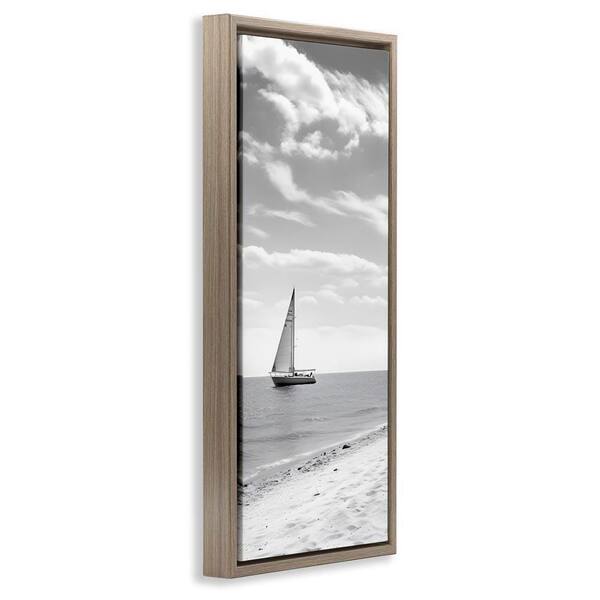 Lonely Sailboat View by LSR Design Studio Brown Floater Frame Typography Graphic Art Print 25 in. x 11 in.