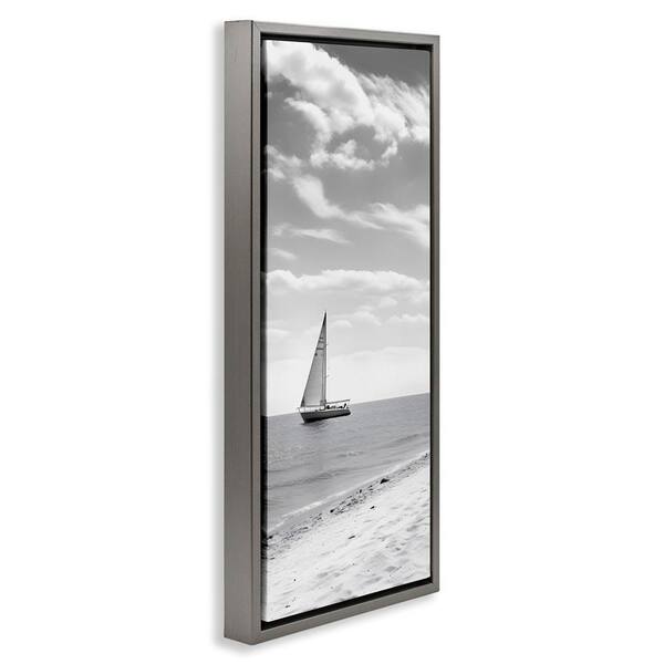Lonely Sailboat View by LSR Design Studio Gray Floater Frame Typography Graphic Art Print 25 in. x 11 in.