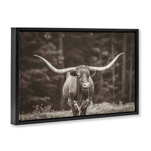 Longhorn Among Flowers by Nathan Larson Black Floater Frame Animal Graphic Art Print 17 in. x 25 in.