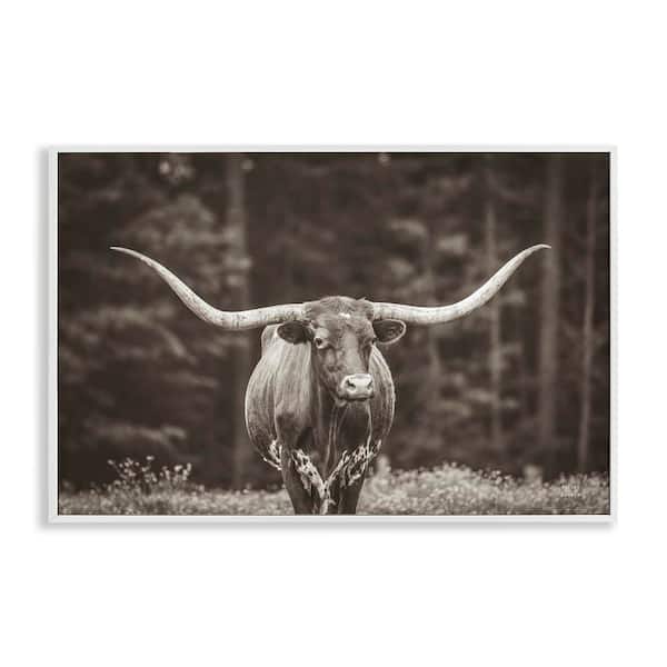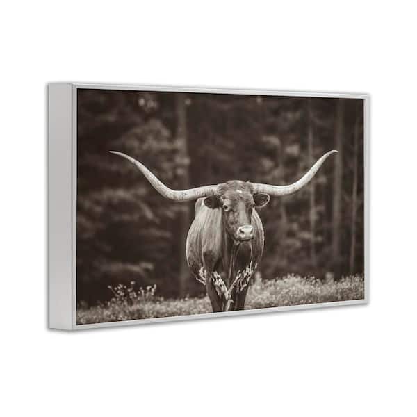 Longhorn Among Flowers by Nathan Larson White Framed Animal Giclee Art Print 16 in. x 24 in.