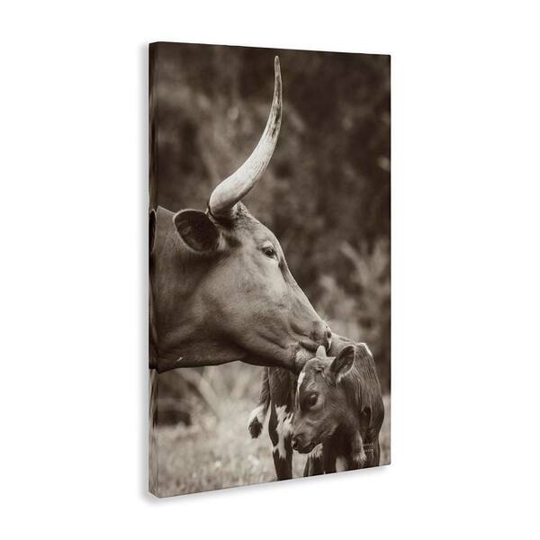 Longhorn Kissing Baby by Nathan Larson Unframed Animal Graphic Art Print 24 in. x 16 in.