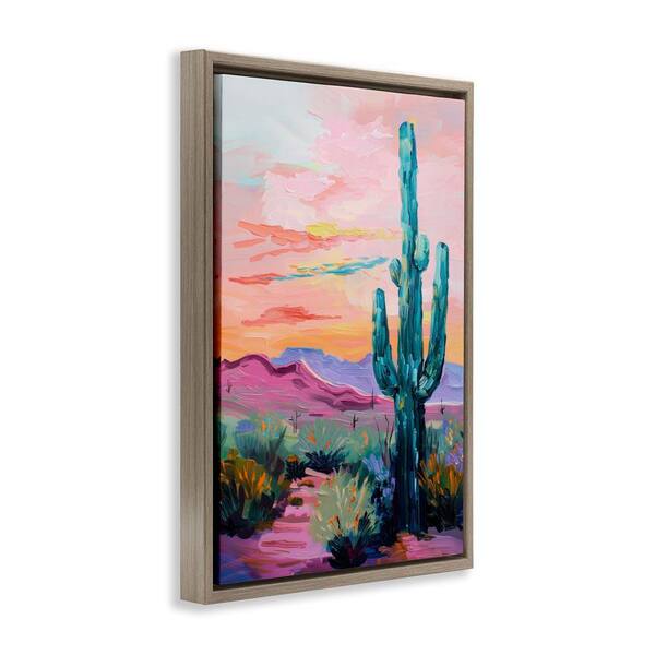 Looming Cactus Pastel Sky by Petal Prints Design Brown Floater Frame Nature Graphic Art Print 25 in. x 17 in.
