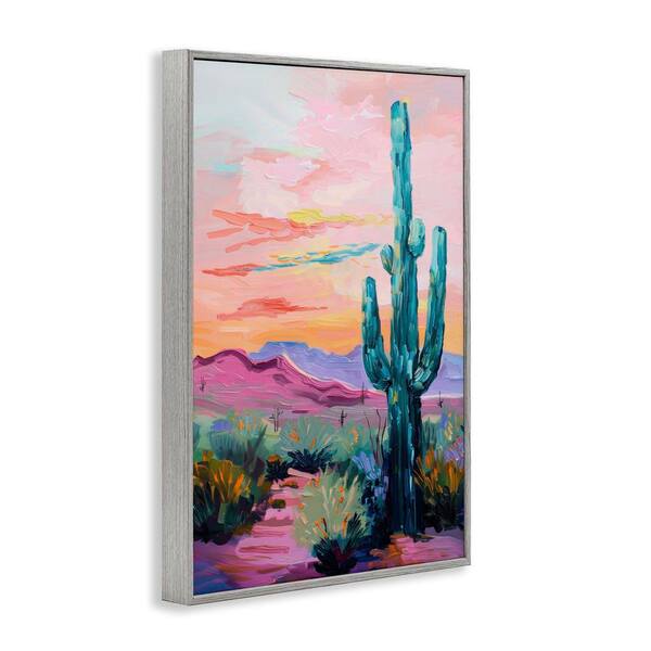 Looming Cactus Pastel Sky by Petal Prints Design Gray Framed Nature Giclee Art Print 18 in. x 12 in.